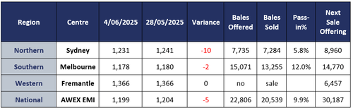 As we roll into the month of June the Wool production forecast was validated with the AWTA sampling data for May being released this week. Bales sampled in May were down 23% and the YTD totals bales sampled from 1 July ‘24 to 31st May 25 were down 11.7%.